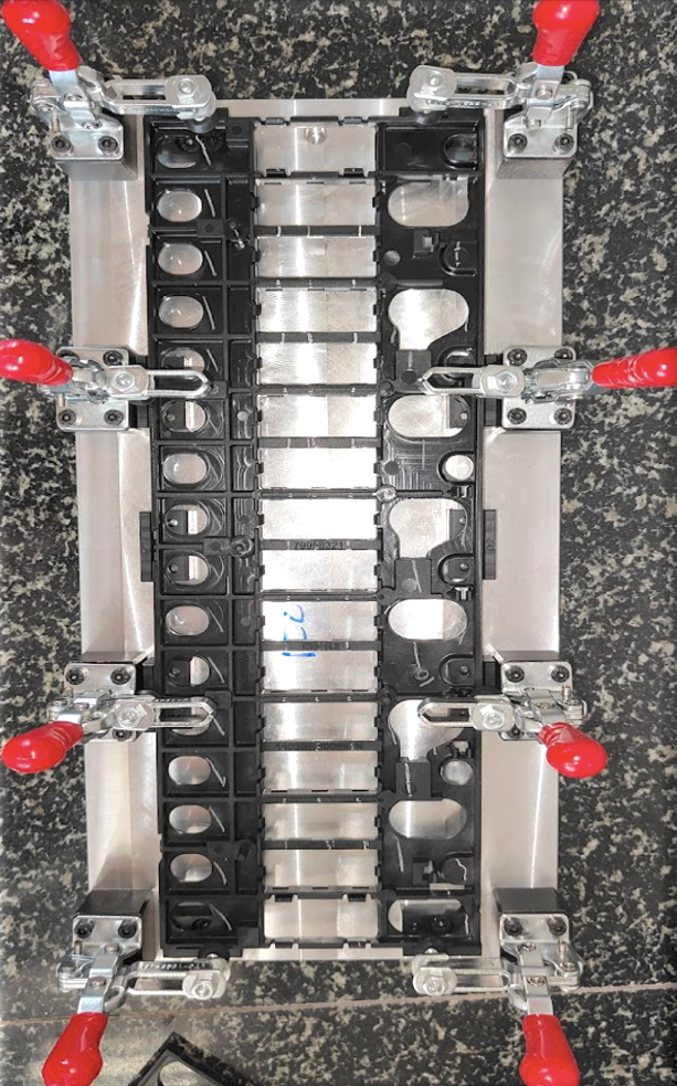 Inspection fixtures and combined injector leak testing systems developed for automotive manufacturing environments.